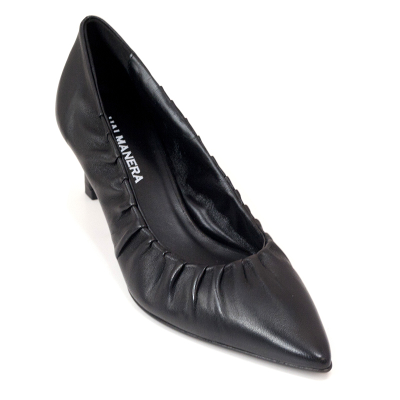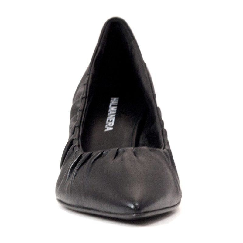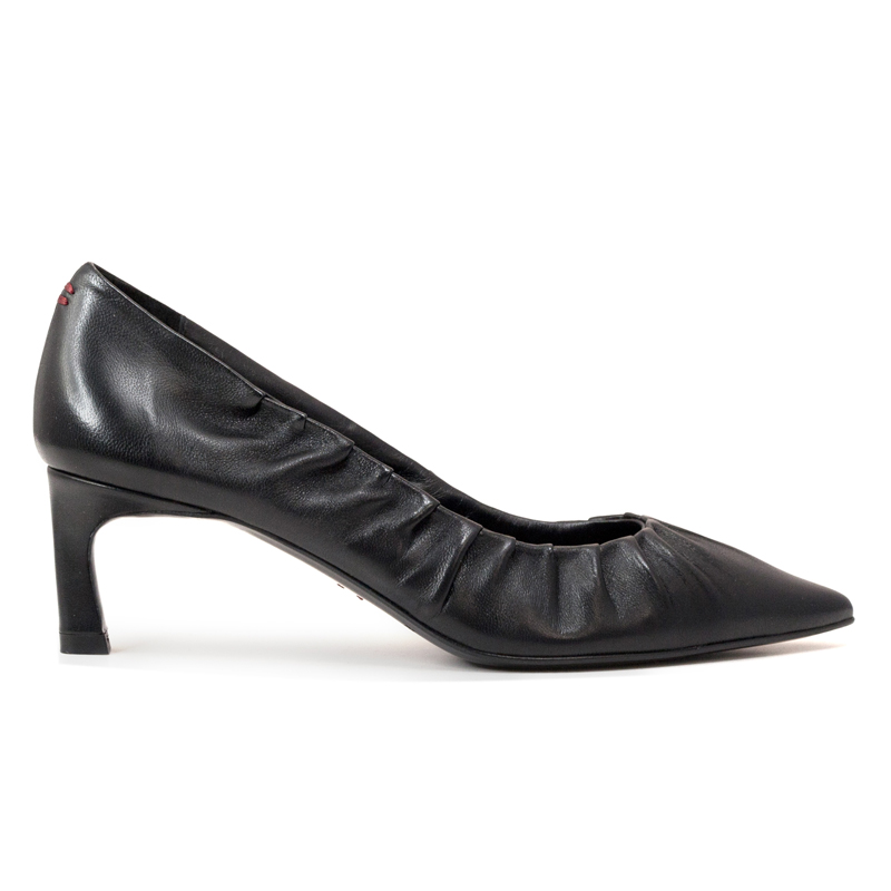 - Made with quality leather and craftsmanship, these Halmanera ruffle detail high heels are the perfect staple for your wardrobe. The heel and details will add style to any look. Strut in comfort and style with every step you take!