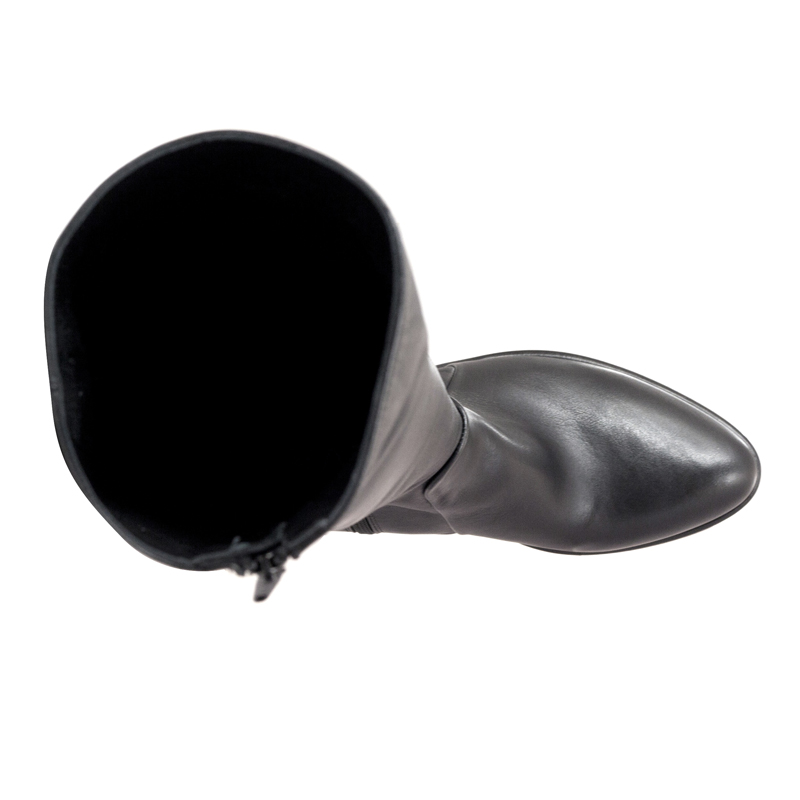 - High heeled pointed toe leather boots