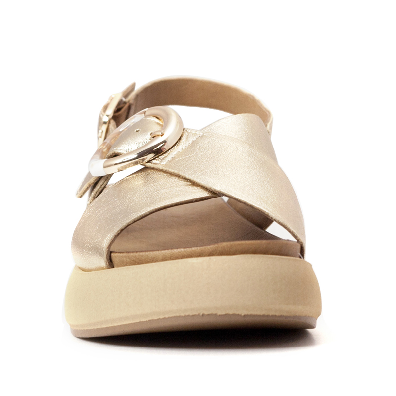 PRODUCT DETAIL: INUOVO Metallic Leather Platform Cross Strap Sandals
