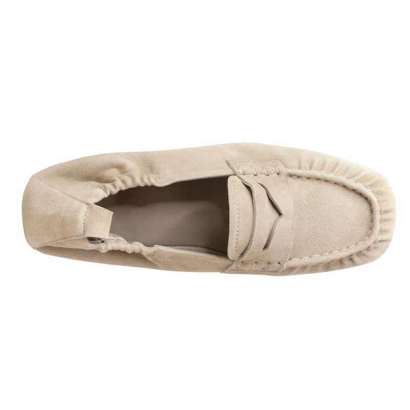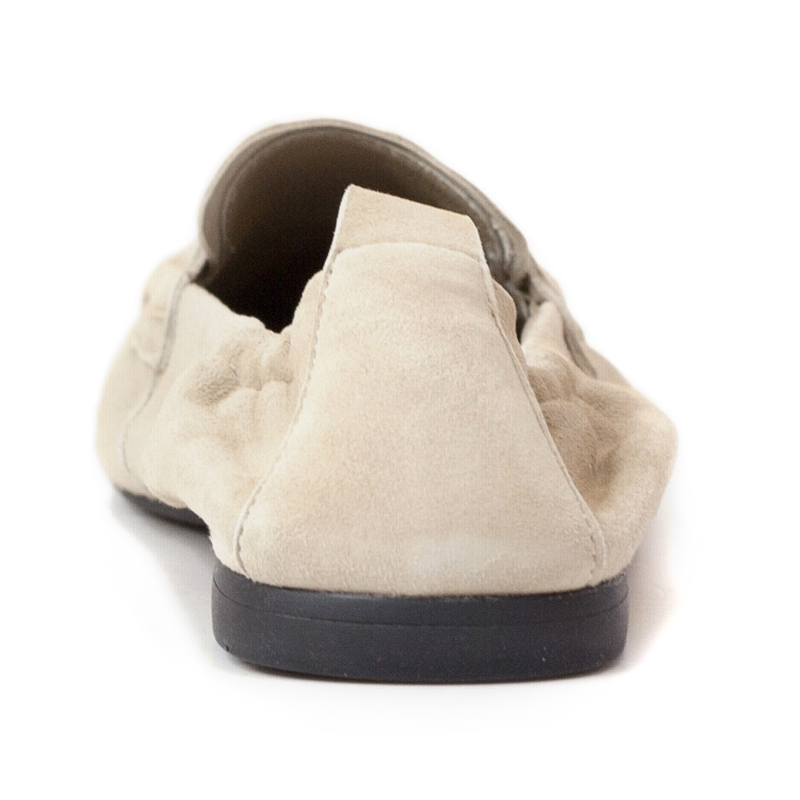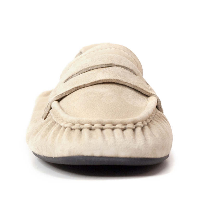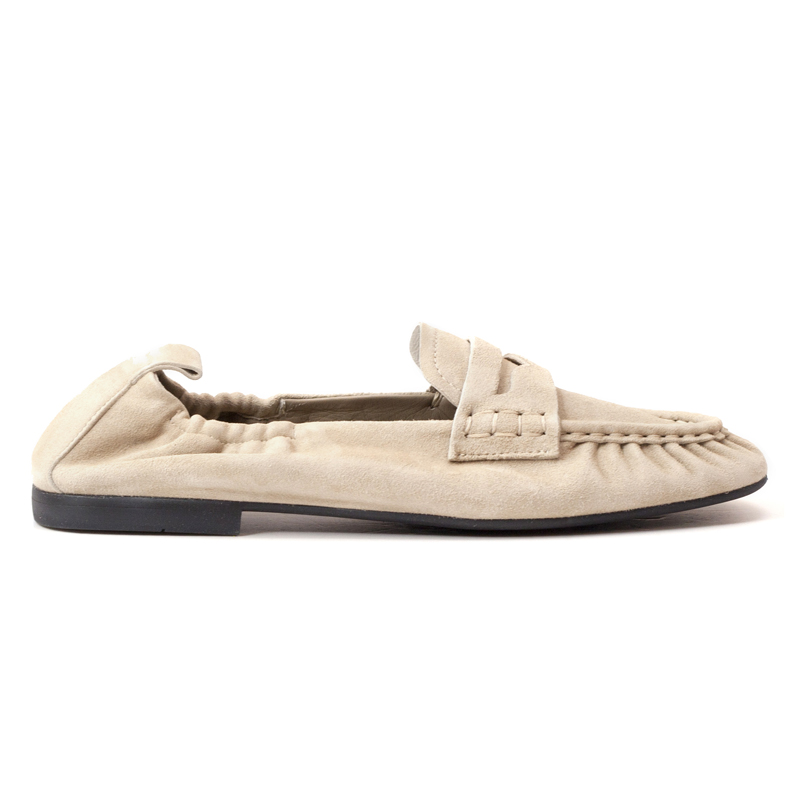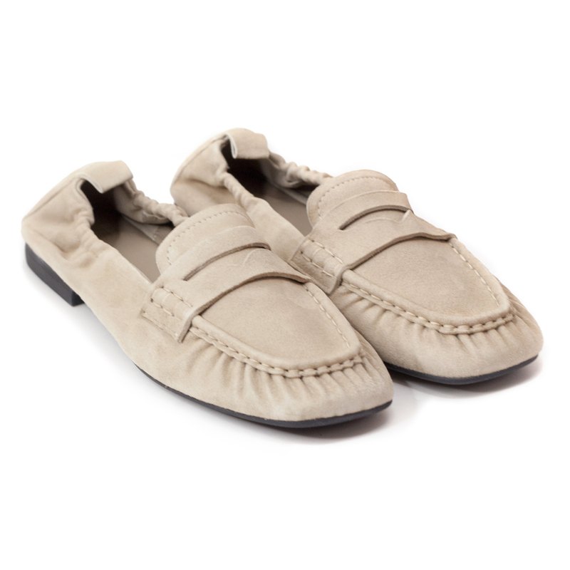 - Minimalist suede loafers with a soft, unstructured silhouette.