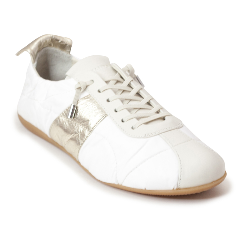 - A low-profile, vintage-inspired sneaker featuring a mix of textures and metallic accents.