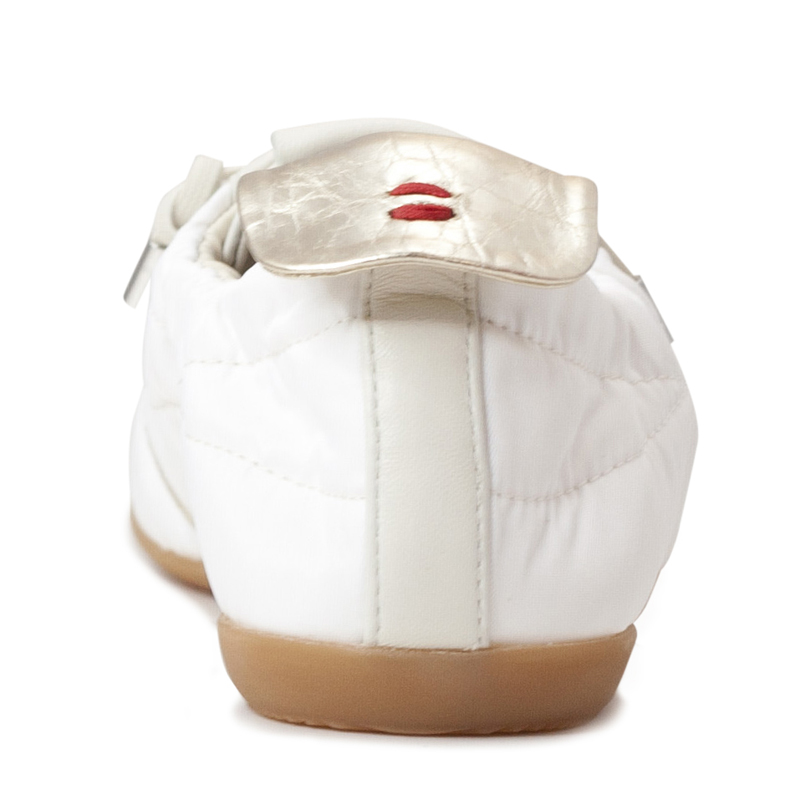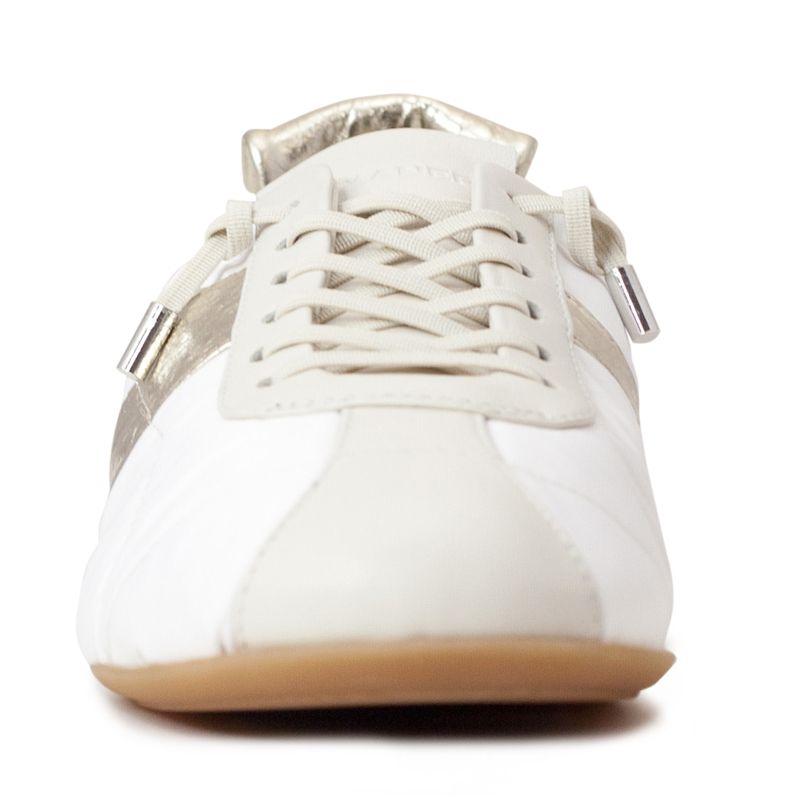 - Features a prominent metallic gold or silver stripe on the side and matching heel tabs.