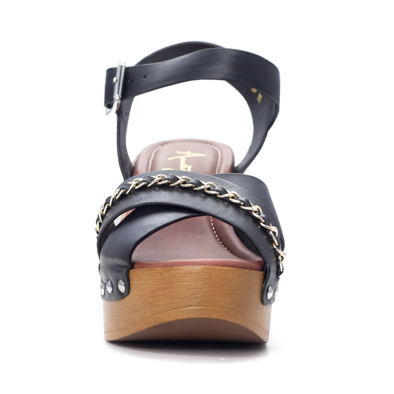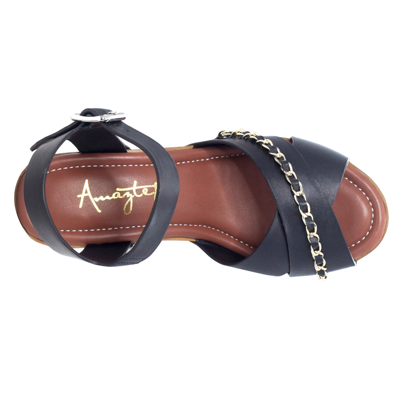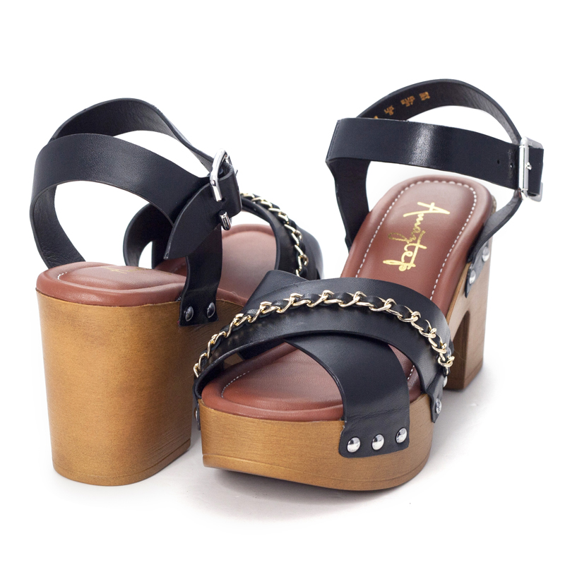 产品信息:Amaztep 真皮带链厚底高跟凉鞋