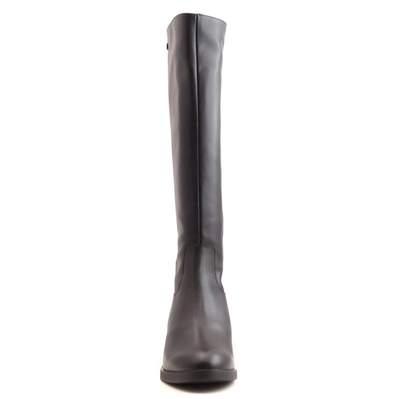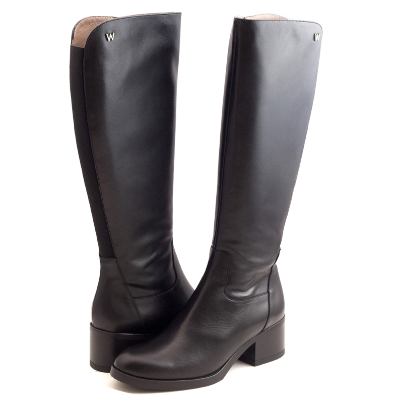 - Wonders皮革圓頭高跟靴